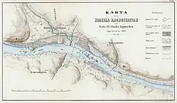 The gold rush on the Ivalo River began in 1870, shortly after gold prospecting was made legal. During the spring and the summer, about 500 gold prospectors made their way through Lapland to the Ivalo River. The prospectors traveled hundreds of kilometers by ski, foot, or boat to the gold prospecting area, which was born to the confluence of Ivalo and its tributary Sotajoki.[3] To regulate the rush, the government established a headquarters for the authorities and service point for the prospectors, called the "Kultala Crown Station." In Kultala, the officials issued licenses for prospectors and purchased their gold. There were also law enforcement officers and cartographers, as well as a restaurant and post office.[1] At its largest, the number of government officials and gold prospectors was approximately 600 people. This was a significant community, as Lapland was mostly uninhabited wilderness, and the largest populated places contained only up to few hundred people.[3]