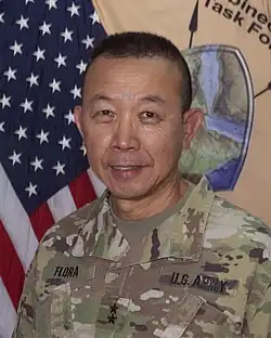 Lapthe Chau Flora (born Vietnamese: Châu Lập Thể) is a retired major general in the United States Army who last served as a special assistant to the director of the Army National Guard.[2] He previously served as commander of Combined Joint Task Force – Horn of Africa.[3] Flora is the former commander of the Bowling Green-based 91st Troop Command, Virginia National Guard. He also served as the Assistant Adjutant General of the Virginia National Guard in Sandston, Virginia. Concurrently, he served as a deputy commander of United States Army Africa, as well as Army Reserve Component Integration Advisor, United States Army Africa.[4]