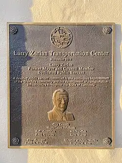 In November 2011, the Glendale Transportation Center was renamed to the Larry Zarian Transportation Center. It is a Glendale Amtrak and Metrolink rail station at 400 W. Cerritos Ave, Glendale, California.[12]