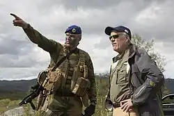 ![]() Lervik (left) speaking to Richard V. Spencer during an exercise in June 2019 | |