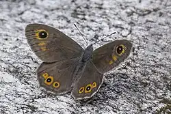 Lasiommata maera, the large wall brown, is a butterfly in the family Nymphalidae.