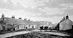 The right to collect coal was leased from 1825 at the latest,[6] and pit mining is known to have taken place in the area from 1856.[7] In 1860, Messrs. Thomas Spowart & Company, Ltd. took a lease over the minerals of the estate. Several hundred men were employed and the village (with a school) erected in short order. The village was difficult to find, being 6 miles from the nearest railway station, and offering an appearance of "a row or two and a farm house" (Lassodie House, the home of the laird) from a distance.[8]