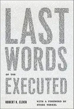 Last Words of the Executed is a book by Robert K. Elder published in 2010. Studs Terkel contributed a foreword. The book documents the final words of death row inmates in the United States, from the seventeenth century to the present day. The chapters are organized by era and method of execution. In each case, Elder also provides short descriptions of the inmates’ backgrounds and purported crimes.