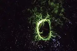 These animals are bioluminescent and highly phosphorescent. This can easily be seen in the dark by disturbing the animals, or by adding a few drops of alcohol to the water.[2] This is the only known freshwater gastropod that emits light. The light stems from a luminescent slime that is emitted by the snail when it gets disturbed or is attacked by a predator such as a crayfish, an eel, or even a dragonfly nymph. Further details on its ecology and general biology can be found in.[5] Latia luciferin is chemically (E)-2-methyl-4-(2,6,6-trimethyl-1-cyclohex-1-yl)-1-buten-1-ol formate.[6]