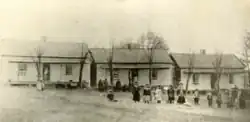 The Latta University campus was located at 1001 Parker Street, off of Oberlin Road in the Oberlin Neighborhood of Raleigh.[3][21][2] Latta purchased in the property in 1891.[8] A three-story school building was constructed in 1895 that was 52 by 200 feet (16 by 61 m).[22] By the fall of 1897, the campus was supposed to have seven buildings, including a dormitory for students.[16] The campus consisted of nearly 300 acres (120 ha) in 1903.[4][20] The university sold 100 acres (40 ha) of its campus in September 1913, for $100 per acre.[23] The 1914 Sanborn map of the campus showed two main structures—the recitation hall and dormitory—and three smaller buildings, identified as the Kindergarten Department in a photograph in Latta's book.[20]