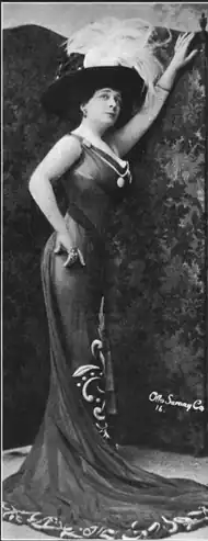 She was known for her "Salome" dance in a minimal gauzy costume.[16][17][18] She designed her own gowns[19] and wore the "latest Parisian creations", as reported in the entertainment press: "Miss Guerite need never hesitate to don any costume that shows the grace of her lines, for she has undoubtedly one of the best figures on the American stage."[20] She contributed a recipe for preparing Brussels sprouts and chestnuts to a 1918 actors' cookbook, to raise funds for war relief.[21]