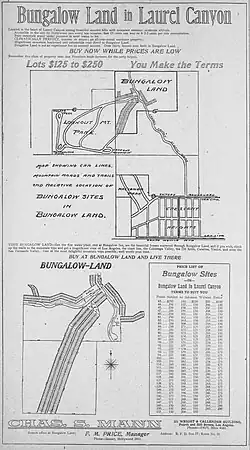 - ^ "See Bungalow Land in Laurel Canyon". Los Angeles Evening Express. September 26, 1908. p. 12. Archived from the original on 2024-03-11. Retrieved 2024-03-11.