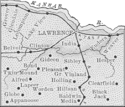 The first railroad in Douglas County, the Kansas Pacific, was built through that territory in 1864.[5]