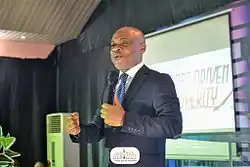 Lawrence Onochie (born 10 August 1969) is a Nigerian pastor, author and public speaker. He is the lead pastor of The Kings Heritage Church, Nigeria.[1][2][3] In 2016, he became a media sensation when he disguised as a beggar to the congregation of his church in Nigeria, just to teach his members about God's love during Christmas.[4][5][6][7]