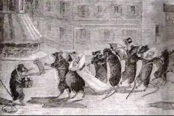 Other origin stories say that a dead rat was found in the beer pump of the cafe,[2] or that the rat was killed because it interrupted a secret lovers' tryst that was taking place in one of the cafe's private rooms.[3]