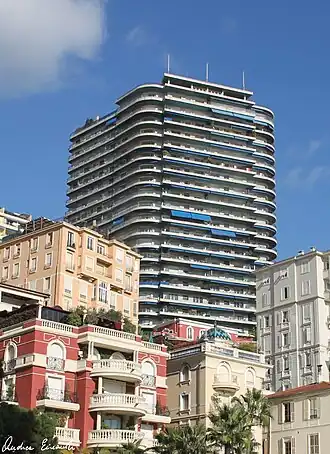 The construction of the building was completed in 1970.[1][2] It was designed in the modernist architectural style.[1] It is 78 metres high, with twenty-five storeys.[1] It is the fourteenth tallest building in Monaco.[4]