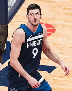 In the 2020 NBA draft, Bolmaro was selected by the New York Knicks with the 23rd overall selection,[14] but his draft rights were traded to the Minnesota Timberwolves in a three-team trade.[15] On 18 September 2021, Bolmaro signed a 4-year, $11.8M rookie contract with the Timberwolves.[16] Bolmaro made his NBA debut on 20 October 2021 in the Timberwolves 124–106 win against the Houston Rockets. He hadn't seen many minutes before 27 November 2021, in which he played a career-high 17 minutes against the Philadelphia 76ers.