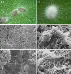 Lecanicillium lecanii is now an approved name of an entomopathogenic fungus species, that was previously widely known as Verticillium lecanii (Zimmerman) Viegas), but is now understood to be an anamorphic form in the Cordyceps group of genera in the Clavicipitaceae.[1] Isolates formerly classified as V. lecanii could be L. attenuatum, L. lecanii, L. longisporum, L. muscarium or L. nodulosum.[2] For example, several recent papers, such as Kouvelis et al. who carried out mitochondrial DNA studies,[3] refer to the name L. muscarium.