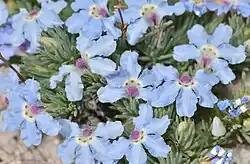 Lechenaultia pulvinaris, commonly known as cushion leschenaultia,[2] is a species of flowering plant in the family Goodeniaceae and is endemic to inland areas of south-western Western Australia. It is a low-lying, hemispherical shrub with narrow, rigid, crowded, hairy leaves, and pale blue or purple flowers.