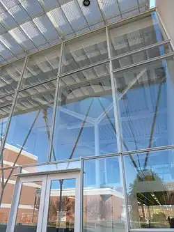 The Lee III extension is a zero-energy building.[2] Lee III generates as much renewable energy as it uses making it one of the most sustainable buildings in the United States. Its sustainability level is achieved by several factors. On the roof of Lee III, photo-voltaic panels are installed which generate energy from the sun. The design of the large window walls which allow for natural light to enter the building minimizes the need for light during the day.[1] The 42 geothermal walls use the natural temperature of the earth to maintain the temperature inside the building.[2] The building creates natural ventilation through its mechanical windows. The windows are located at the bottom of the building’s base and 30 feet above the floor at the ceiling. Natural ventilation stabilizes the temperature inside and provides for fresh air without using energy.[3] The closed-loop geothermal heat pump offsets the heating and cooling bundle.[8]