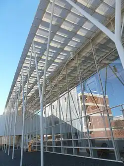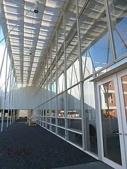 The Lee III Hall located on the Clemson University Campus in Clemson, SC, generates enough energy to offset its energy use. Its sustainability puts it on the list of one of the most-energy-efficient academic buildings in the United States. The Lee III Hall is considered to be zero net-energy ready. Its design and materials make it eco-friendly and allow it to eliminate its energy consumption with its own renewable energy.[1] Also, the building contains a 30,000 square-foot garden-roof, the largest university garden-roof in the southeastern United States. Lee III was completed and added to the Lee complex in 2012. It is estimated to have a 55,000-square-foot area[2] and a total cost of 31.6 million dollars.[3] Lee III serves for the College of Architecture, Arts and Humanities.[1]
