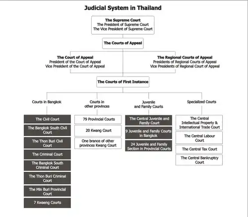 - ^ Charunun Sathitsuksomboon, "Thailand's Legal System: Requirements, Practice, and Ethical Conduct" <http://asialaw.tripod.com/articles/charununlegal8.html> (accessed 10 September 2011).