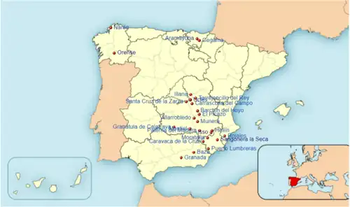 | Caravaca de la Cruz[4] | Murcia | Las Tosquillas | 36°06′N 1°52′W / 36.100°N 1.867°W | |
