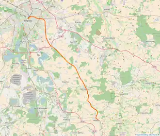 After the building of Leipzig Hauptbahnhof from 1902 to 1915, the line now started at the new central station. Previously, the line started at Dresdner Bahnhof (Dresden line station).[20]