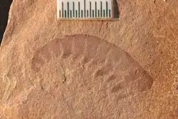 In 1929, American paleontologist Charles E. Resser described a poorly preserved arthropod fossil from the Kinzers Formation. He thought this specimen represented a new species of Anomalocaris, so it was classified as Anomalocaris pennsylvanica,[2] which makes it the second radiodont species ever described.[3] Numerous specimens have later been referred to this species, but the majority of them were subsequently assigned to different taxa of radiodonts.[3][4] Only three specimens are now confidently included within this species.[3]