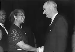 In 1954 Rolla met Martin Luther King, Jr. while traveling on assignment to Montgomery, Alabama, to report on the Brown vs. Board of Education trial for the Dallas Express. She returned in 1955 to cover the Montgomery bus boycott.[9] In 1963, she was selected to serve on Lyndon B. Johnson's Conference on Community Leaders, sponsored by the Equal Employment Opportunity Commission and participated in the historic March on Washington, in which Martin Luther King, Jr. presented his "I Have a Dream" speech and Rolla called the "high point" of her life.[10][2][8] About King, Rolla said, "He gave me motivation to keep on keeping on and to be less disturbed by our position...[he] has given me more steel in my limbs and faith."[9]