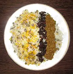 Lentil rice (Persian: عدسپلو) is a well-known Persian dish in Iran. It is almost always cooked with raisins and sometimes served with dates or meat.[1][2]