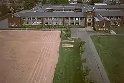The current red brick Academy building was built in 1960, and extensions have been added over the years.[29] [30] The original school building dating from when the Academy was founded in 1886 has since served as Lenzie Primary school.[31][32] More than 110 years after opening, the school admitted its first physically disabled student in 1996, which meant the school had to install a lift and ramps to make the whole building accessible.[33][34][35]