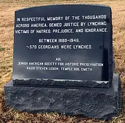 - ^ Brasch, Ben. "Cobb's Leo Frank memorial site is getting a national lynching marker". The Atlanta Journal-Constitution. Archived from the original on August 7, 2020. Retrieved August 26, 2020.