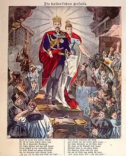 In sum, Caprivi's approach marked the end of the protectionist Schutzzollpolitik of the later part of Bismarck's chancellorship, but it was far from being a policy of free trade. Caprivi's policy enjoyed the support of a majority in the Reichstag and Wilhelm II cited his economic policies as grounds for his decision to promote Caprivi to the status of Count.[33] This general support subsided quickly after Caprivi ended the trade war with Russia in 1894. This not only allowed the export of German industrial products but also a limited increase in agricultural imports to Germany. The damaged relationship with Russia was clearly improved, but internally it brought fierce opposition from agriculturalists.[34][35][36]