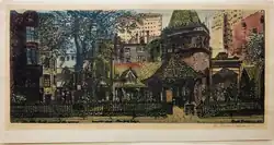 Two decades after he died, his works began showing up in art auctions.[13][14] and in the 1990s they were included in group exhibitions devoted to urban scenes.[15][16] In 1998 an arts council in the New York suburbs gave one of Dolice's etchings a prominent place in a centennial exhibition celebrating the union of New York's five boroughs. Called "Vintage New York", the show traveled to towns in the metro area suburbs and in 2003 appeared in New York's Grace Institute.[17][18] A report of the exhibition in a local New Jersey paper included a reproduction of a Dolice etching called "East 34th Street" that showed a station on the 3rd Avenue El with the Empire State Building in the background.[19] A Daily News report of the show at Grace Institute included a reproduction of the 1932 etching called "Little Church Around the Corner".[18] Since that time, exhibitions that included works by Dolice have been mounted at Hofstra Museum, Long Island, NY; the Montauk Artists' Association, Montauk, NY; and Tribeca Gallery, New York City.[12]