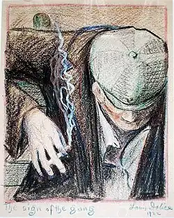 Dolice later said he started his art career in his late teens when he left the coasting vessel on which he served as cook and began selling drawings to tourists in Alexandria, Egypt. An interviewer quoted him as saying,"The life there fascinated me—camels, Arabs, pyramids. I sketched in pencil and sold my work to tourists. I made so much money I didn't know what to do with it."[1] Leaving Alexandria, he returned to Italy, signed on as cook on a freighter, and, in 1912, arrived in New York having no knowledge of English but competent to work as a chef. He quickly found work in the then-fashionable Sherry's Restaurant at Fifth Avenue and 44th Street. By 1920—by then fluent in English—he had worked his way up to the position of associate chef at the Biltmore luxury hotel on Madison Avenue. During his free time, he made sketches of local sights such as the Washington Square Arch, the Little Church Around the Corner, and Chinatown and turned them into copperplate etchings. He also made genre pictures such as the pastel and pencil drawing called "The Sign of the Gang" and an enigmatic sketch-etching he called "The Misery", both dated 1922.[1] He sold these works door-to-door and, profiting from word-of-mouth publicity he generated, gradually became more successful. In 1925 a news report suggested that he peddled his pictures "like a pushcart merchant".[4] Working out of his basement studio on East 40th Street, he was also able to place his etchings in some of the art shops along 5th Avenue.[4]