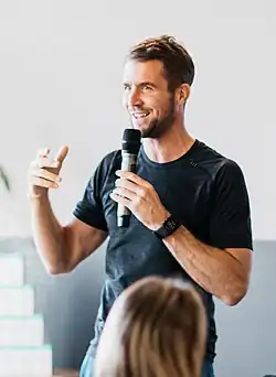 ![]() Leon Taylor talks to a group about mental wellness | ||||||||||||||||||||||||||||||||||||||||||
