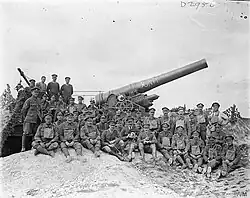In October 1916 Parrington was appointed to command a howitzer battery.[5] He was appointed to the acting rank of major on 9 January 1917, when he assumed command of a siege artillery battery.[8] Parrington took part in the 1917 Battles of Arras and Passchendaele.[5] He was confirmed in the substantive rank of captain on 3 November 1917.[9] Parrington fought against the German spring offensive of 1918.[5] He was mentioned in despatches four times during the war.[1]