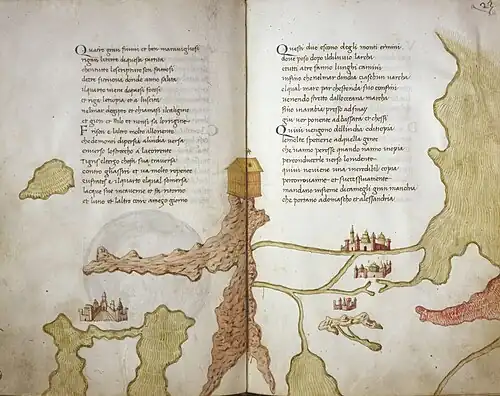 Both Leonardo and Gregorio Dati are attributed authorship of La Sfera ("The Sphere"), an astronomical-geographic poemetto in ottave, written in the second half of the 14th century, and a work much popular in its time. This work in verse gives information about the world, the marinaresche compass and other things, adding observations, notes about travel and designs. In some manuscripts of La Sfera there are designs representing ports, headlands, islands, linked by many lines.