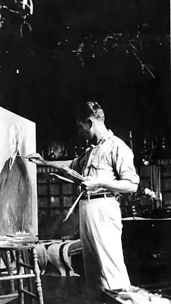 In 1931 he won the Isidor Medal at National Academy of Design and that summer he travelled to Hendaye, France, spending time with his family, Maurice Speiser (a longtime friend from Philadelphia) and Ernest Hemingway (right). In 1932 he had a solo exhibition at J.J. Gillespie & Company, Pittsburgh, and Robert C. Vose Galleries, Boston. His show in Boston led to him painting several Governors of Massachusetts and the biggest benefactor of the Boston Public Library, Mr. Deferrari. At the library's entrance an entire room is devoted to this painting. Continuing his interest in painting unique and different people, in 1934 he traveled to Guatemala on a commission from the Grace Lines to paint the people of Antigua and Chichicastenango. Also that year he was chosen by Holger Cahill to paint a New York City police officer, Bernard Jeppson, with the painting to be unveiled at Rockefeller Center in the city's first Municipal Art Show. The following year he had a solo exhibition at Vose Galleries, Boston. He bought a weekend house near Westport, Connecticut, in 1936 and renovated the barn into a studio.
