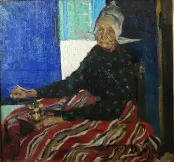 From 1909 to 1913, he taught at Graphic Sketch Club, Philadelphia, which now is the Samuel S. Fleisher Memorial. In 1910, he won the Cresson Traveling Scholarship, and went to Europe with his fiancée, the painter Helen Fleck, and her mother. In 1911 they married and in 1912, he again won the Cresson Scholarship, allowing them to travel and work in Volendam, Holland. During these years, he met Leopold Stokowski, who became a close friend, and the resulting portrait (below) won the 1913 Fellowship Prize and the Popular Prize at the Pennsylvania Academy annual. Also that year, he won honorable mention at the Carnegie International Exhibition for a Volendam painting, "Tired Out", and he was honored with a special section at Fourth Annual Exhibition of the Associated Artists of Pittsburgh. During the summer, he painted Robert Walton Goelet’s wife, Elsie Whelen Goelet at Ochre Court in Newport, Rhode Island.