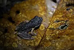 Leptobrachium hendricksoni (common names: Thai spadefoot toad, bright yellow-eyed crawl frog, spotted litter frog) is a species of amphibian in the family Megophryidae. It is found in Malay Peninsula (Southern Thailand and Peninsular Malaysia), Sarawak (Borneo), and Sumatra (Indonesia).[2] Its natural habitats are tropical moist lowland forests, rivers, freshwater marshes, and nearby plantations and heavily degraded former forests. It is threatened by habitat loss.[1]