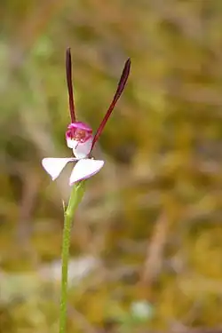 Leptoceras menziesii, commonly known as rabbit orchid,[2][3] is a plant in the orchid family, Orchidaceae and the only member of the genus Leptoceras. It is a slender plant, usually found in large colonies and which only flowers after fire. The flowers are small, white, pink and red on a stem up to 30 cm (10 in) tall and is endemic to southern Australia. It was one of the first orchids from Western Australia to be described and was given the name Caladenia menziesii, a name still used by some authorities.