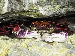 Leptograpsus variegatus, known as the purple rock crab, is a marine large-eyed crab of the family Grapsidae, found in southern subtropical Indo-Pacific Oceans.[1] It grows to around 50 millimetres (2.0 in) shell width.[1] It is the only species in the genus Leptograpsus.[2]
