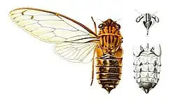 - ^ Marshall, David C.; Moulds, Max; Hill, Kathy B. R.; Price, Benjamin W.; et al. (2018). "A molecular phylogeny of the cicadas (Hemiptera: Cicadidae) with a review of tribe and subfamily classification". Zootaxa. 4424 (1). Magnolia Press: 1–64. doi:10.11646/zootaxa.4424.1.1. PMID 30313477.
