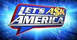 Let's Ask America is an American interactive game show which debuted on September 17, 2012. The show features contestants who play from their homes via webcams, answering trivia questions relating to current events. On November 4, 2013, it was announced that Scripps planned to launch Let's Ask America nationwide through a distribution deal with MGM Television.[1] Contestants participate by Skype from the comfort of their own home, an inexpensive technology negating the need for travel expenses. In sweeps months, the show features celebrity editions featuring local news talent from the stations carrying the series such as meteorologists and anchors playing the game from their station's studios for local charities.