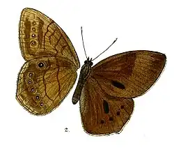 - ^ de Nicéville, L. , 1887 Descriptions of some new or little-known Butterflies from India, with some Notes on the seasonal Dimorphism obtaining in the Genus Melanitis Proc. zool. Soc. Lond. 1887 (3) : 448-467, pl. 39-40