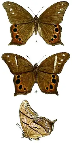 3. ^ Weymer, G. 1910-1911. 4. Familie: Satyridae. In: Seitz, A. (Ed.), Die Gross-Schmetterlinge der Erde. Stuttgart, A. Kernen. 5: 185-225.
