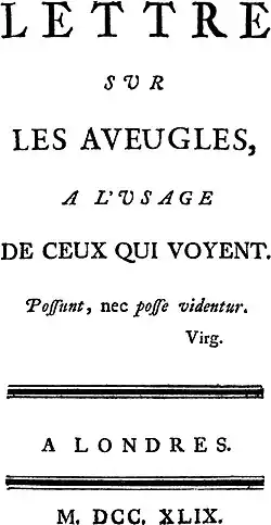 - (in French) Lettre sur les aveugles à l'usage de ceux qui voient (1749 edition)