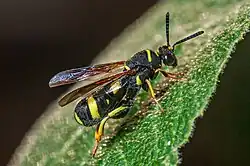Females especially parasitize larvae belonging to the family Megachilidae, genera Anthidiellum, Anthidium, Hoplitis and Osmia.[5] Larvae of Leucospis dorsigera also feed on larvae of Chelostoma florisomne and other larvae of Apidae (Megachilinae), Ichneumonidae (Xorides corcyrensis, Xoridinae) [4] and Bostrychidae (Coleoptera).[2]