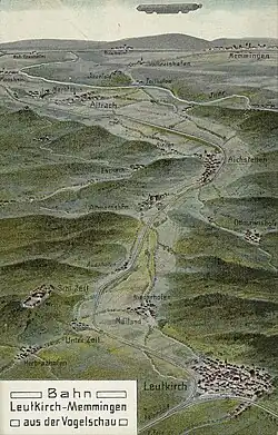"Bird's eye view of Leutkirch–Memmingen railway“, postcard by Eugen Felle, 1909