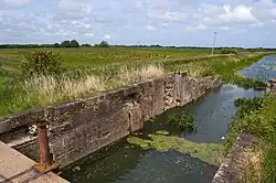 The canal was very busy during its life, but traffic started to fall off in the 1930s, and it was officially closed in 1935.[6] Eventually the lock fell into disuse, and Leven Canal became cut off from the river. Subsequently, the lock, which was a flood lock containing three sets of gates, was turned into a sluice, to allow water to pass into the River Hull.[7]