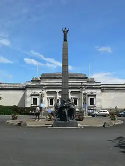 The Leverhulme Memorial stands to the west of the Lady Lever Art Gallery on the junction of Windy Bank and Queen Mary's Drive, Port Sunlight, Wirral, Merseyside, England. It commemorates the life of William Lever, 1st Viscount Leverhulme, the businessman who created the factory and model village of Port Sunlight. The memorial was designed by James Lomax-Simpson, and the sculptor was William Reid Dick. It consists of an obelisk with a figure on the top, with a separate group of four figures beside it. The memorial was unveiled in 1930. It is recorded in the National Heritage List for England as a designated Grade II listed building.
