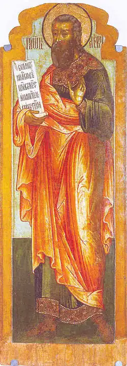 In accordance with his role as founder of the Levites, Levi is referred to as being particularly pious. The Blessing of Moses, which some textual scholars attribute to a period just before the deuteronomist, speaks about Levi via an allegorical comparison to Moses himself,[17] which haggadah take to support the characterization of Levi (and his progeny) as being by far the greatest of his brothers in respect to piety. The apocryphal Prayer of Asenath, which textual scholars believe dates from some time after the first century AD, describes Levi as a prophet and saint who is able to forecast the future and understand heavenly writings, and as someone who admonishes the people to forgive and to be in awe of God.[18] The Book of Malachi argues that Yahweh chose the Levites to be priests because Levi, as God's minister,[19] embodied true religious principles, possessed reverence for Yahweh, held the divine name in awe, upheld peace, provided a model of good morality, and turned many people away from sin.[20]