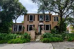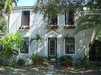 It is a 2-story Mediterranean Revival style house constructed of textured stucco over clay tile. The four bay plan is rectangular with a one bay wing on its right side, resting on a concrete foundation. The gable roof is clad in concrete barrel tile of the period. It was built in 1926 as part of the Brotherhood of Locomotive Engineers development of the city.[2] It was added to the National Register of Historic Places on April 12, 1989.[3]